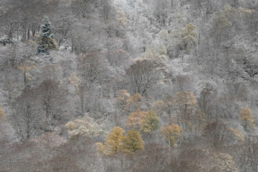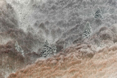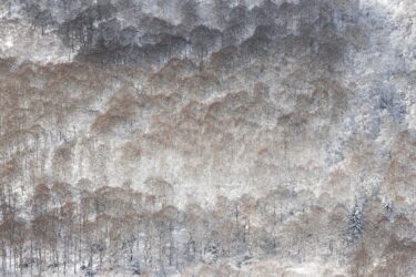 Le relief prend formes, traits fins espacés ou resserrés jusqu’à former masse, points éclairés comme piqûres couchées en motifs inattendus. Fayards et sapins rythment une danse séductrice d’occupation de l’espace.